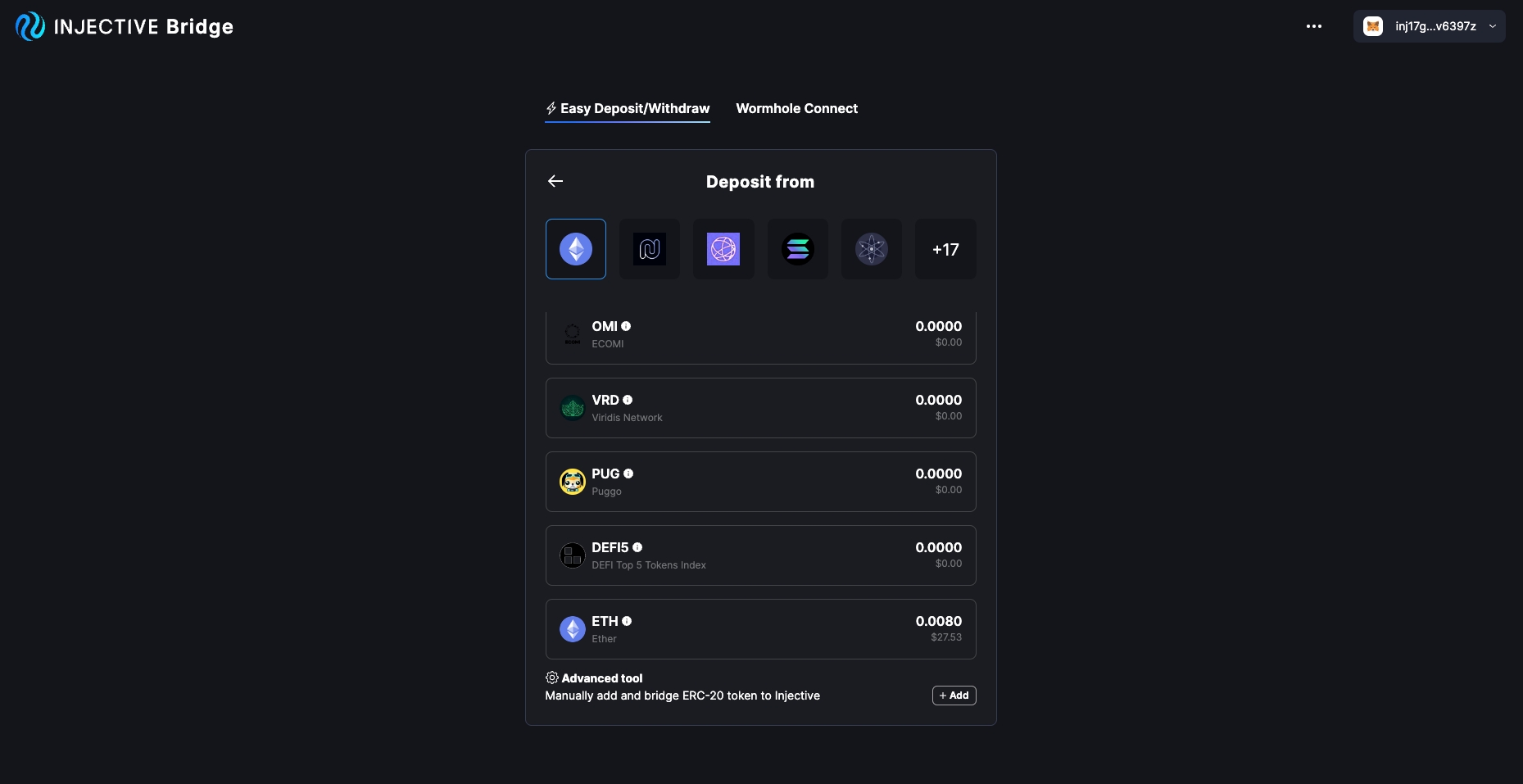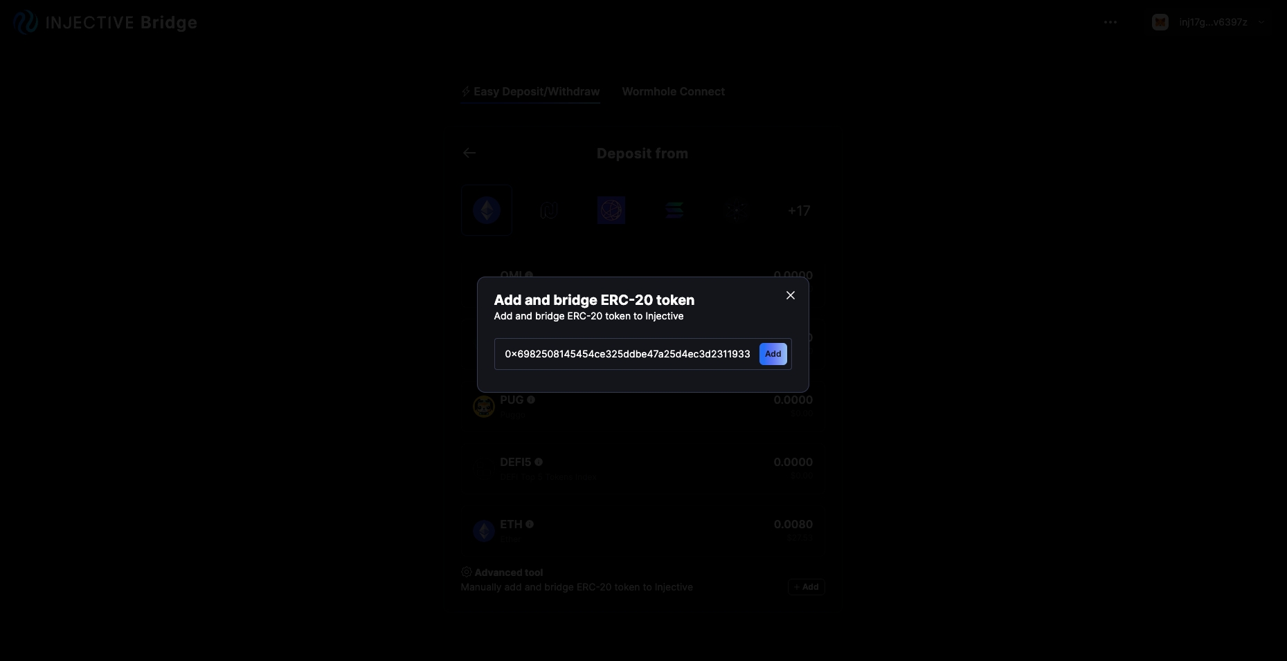 对于 Injective 原生代币,请跳过桥接部分,直接进入第 6 步。